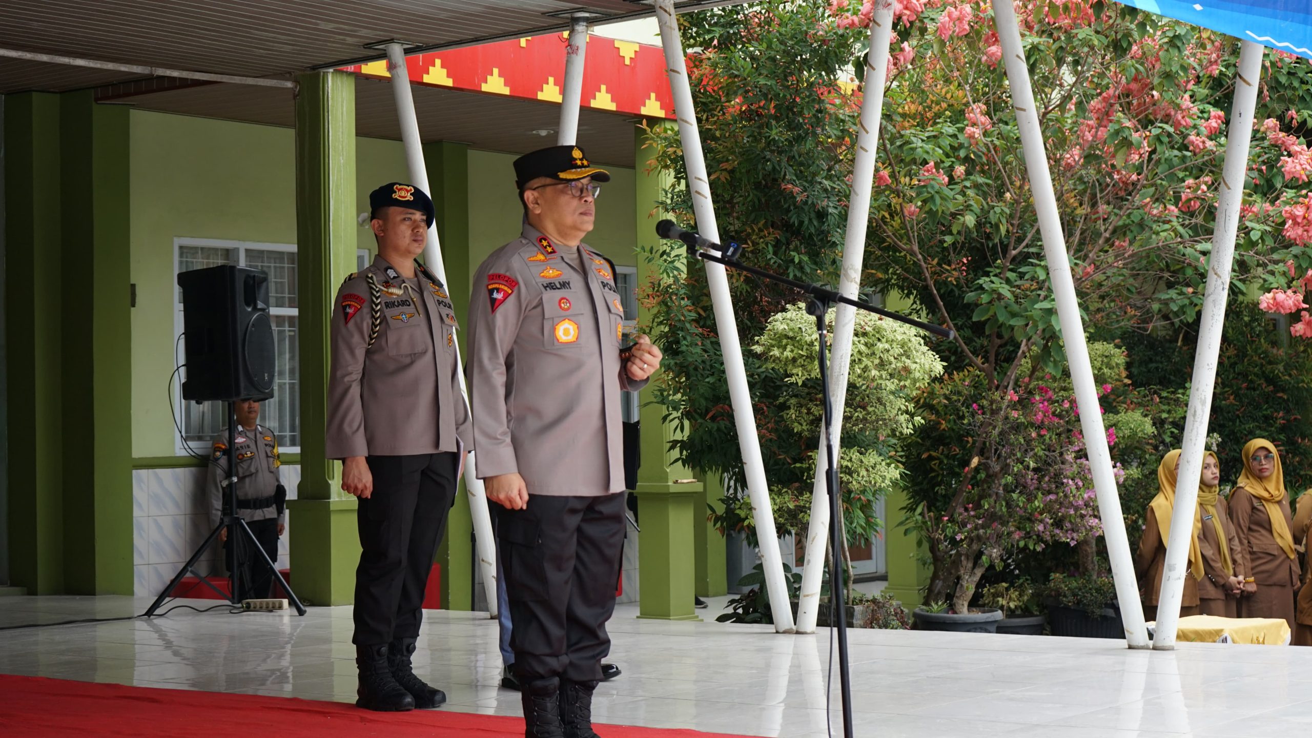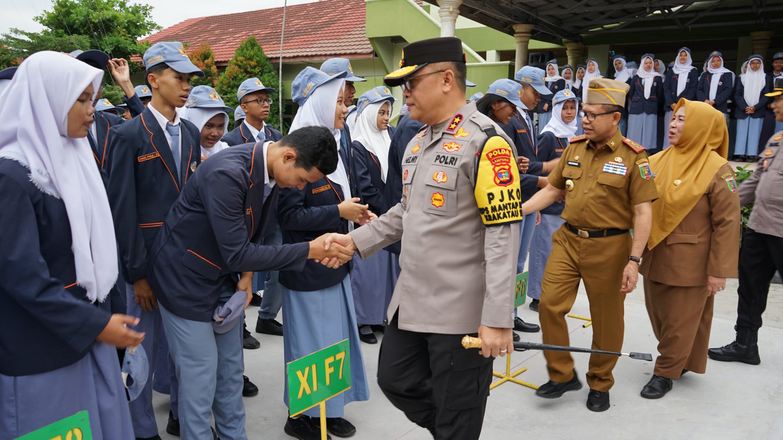 Dalam kunjungan ini, Inspektur Jenderal Polisi Helmy Santika, S.H., S.I.K., M.Si., menjadi inspektur upacara bendera dan menyampaikan amanat mengenai perilaku peserta didik di era perkembangan IPTEK. IPTEK dapat menjerumuskan kedalam kasus pelanggaran HAM, kecanduan teknologi, dan perilaku penyimpangan norma. Oleh sebab itu, pembinaan serta sosialisasi mengenai pentingnya berpikir kritis di era globalisasi harus sering diberikan kepada para peserta didik. Para peserta didik yang perlahan mengerti mengenai perilaku bijaksana dalam penggunaan teknologi digital, dan mampu menggunakan teknologi digital sebaik mungkin, dapat menjadi inspirasi untuk orang-orang di sekitarnya untuk merubah gaya hidup yang mengarah pada perbuatan negatif menjadi perbuatan yang bermanfaat bagi masa depannya.