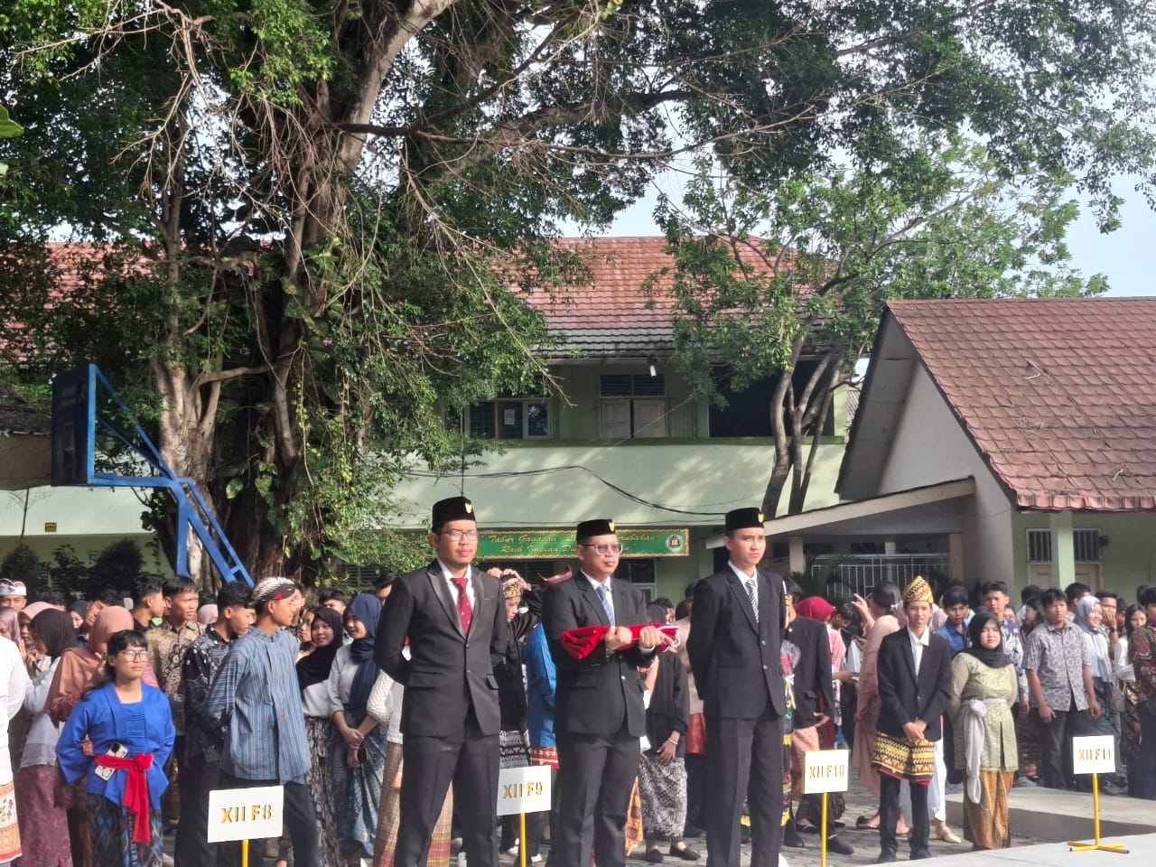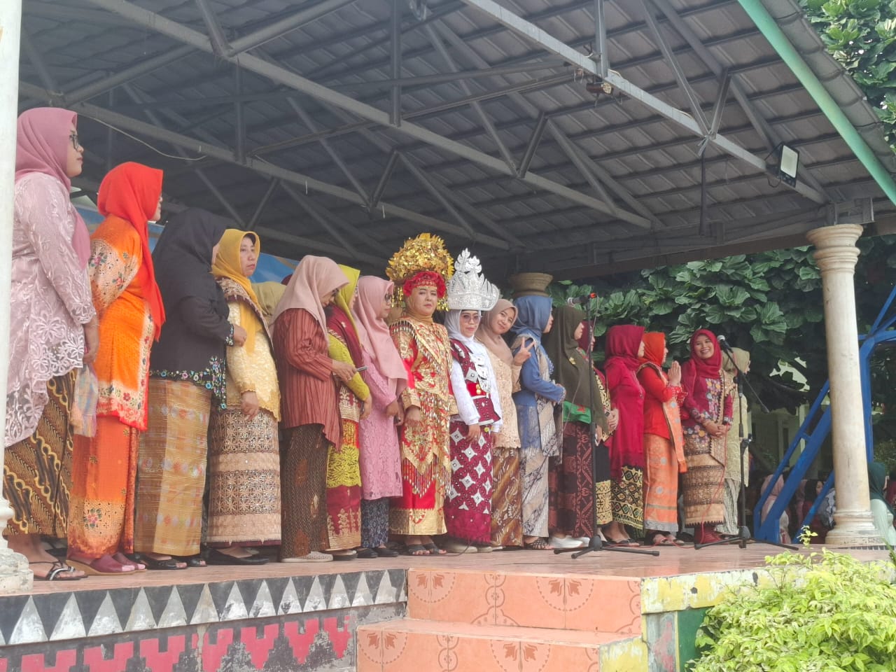 Para siswa/i berbaris rapih dengan mengenakan pakaian adat masing-masing, begitu juga dengan para guru yang turut memakai pakaian adat. Mereka tampil menarik dengan beberapa pakaian adat khas Indonesia seperti Kebaya dari Jawa dan Baju Teluk Belanga dari Lampung, bahkan salah satu dewan guru memakai siger besar yang sangat cocok dengan penampilannya.