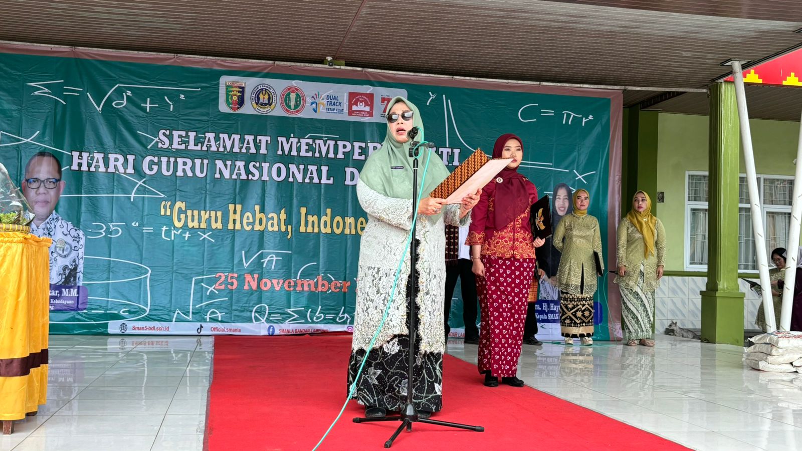 Di SMAN 5 Bandar Lampung, Upacara Peringatan Hari Guru Nasional dilaksanakan dengan antusias oleh para siswa/i serta guru-guru yang berbahagia. Tahun ini menjadi lebih spesial karena para dewan guru yang menjadi petugas upacara, dari pemimpin upacara hingga pengibar bendera. Mereka berlatih keras untuk menampilkan yang terbaik pada pagi yang cerah ini.