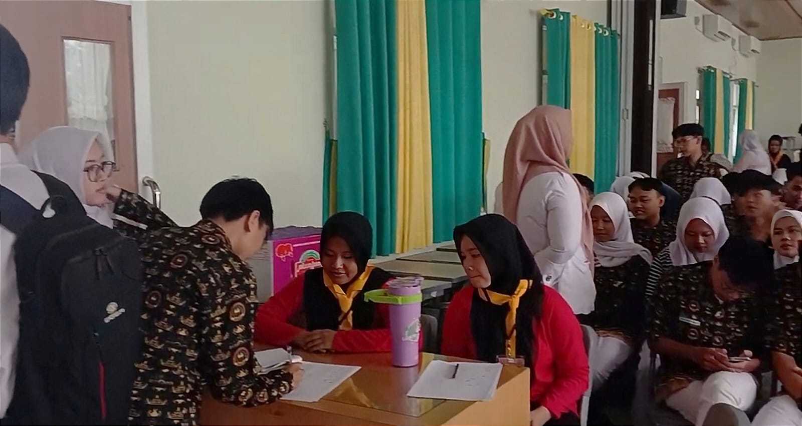 Sejak pagi hari, suasana aula telah dipenuhi oleh para guru dan siswa yang datang dengan kesadaran penuh untuk berpartisipasi. Di depan pintu aula, panitia menyediakan meja registrasi sebagai tahap awal bagi para calon pendonor. Proses ini dilakukan secara tertib sehingga seluruh peserta dapat mengikuti rangkaian kegiatan dengan nyaman dan teratur.