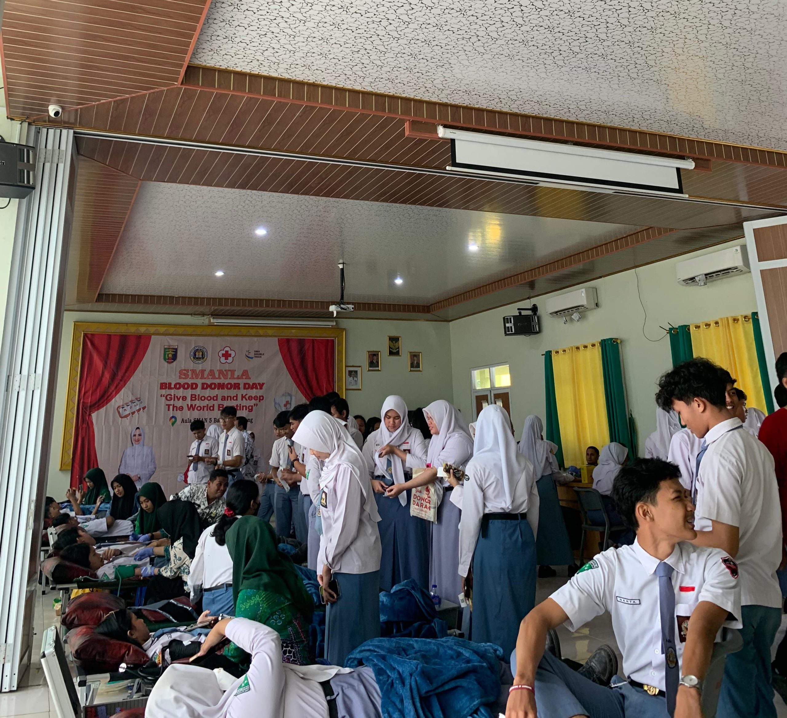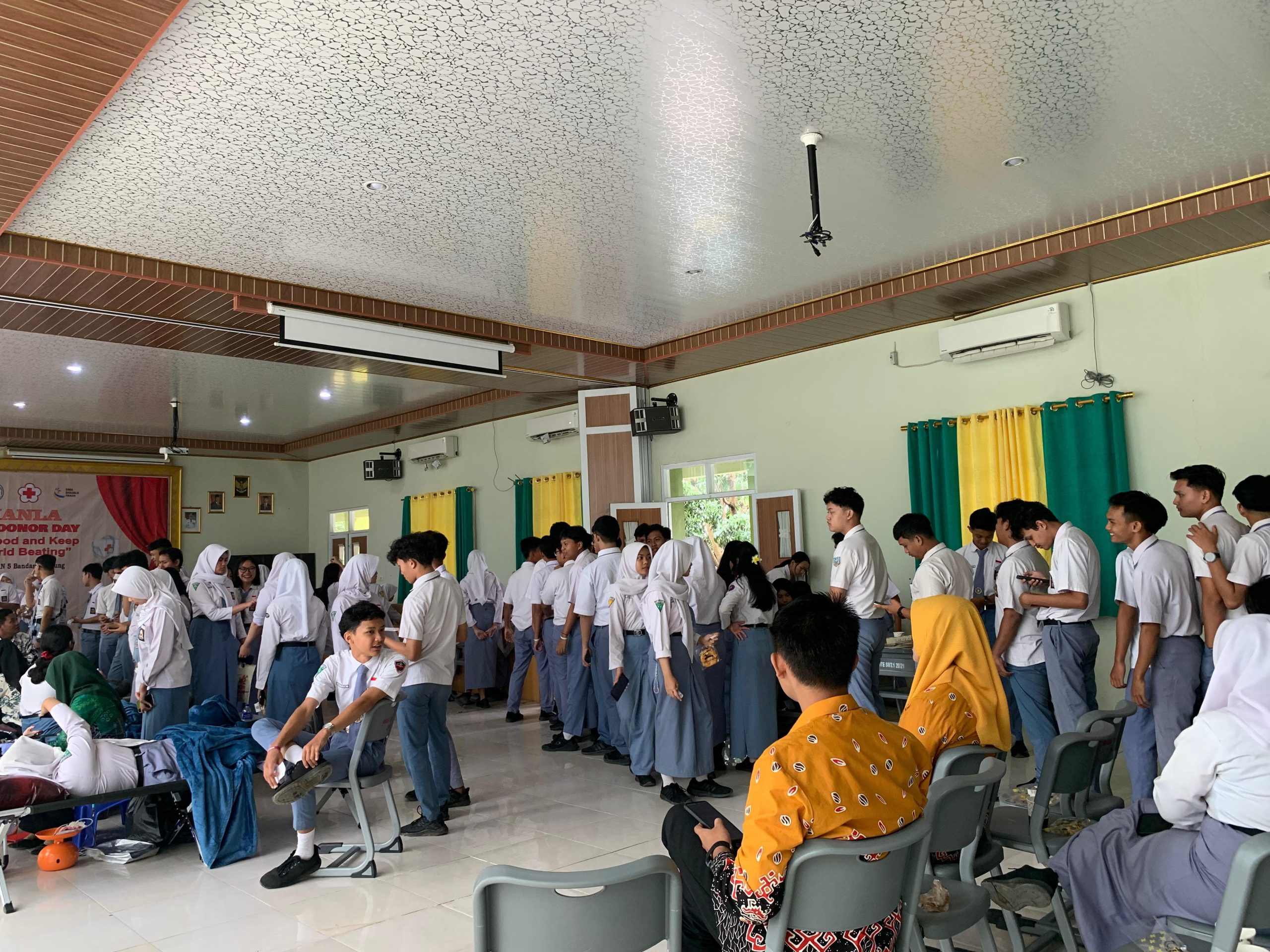 Kamis (16/01/25), SMA Negeri 5 Bandar Lampung kembali menyelenggarakan kegiatan donor darah sebagai salah satu bentuk kepedulian sosial terhadap masyarakat. Kegiatan donor darah merupakan acara amal yang terbuka untuk umum. Kegiatan ini berlangsung di aula sekolah dan diikuti oleh siswa, guru, staf sekolah, dan masyarakat yang telah memenuhi syarat dan ketentuan pendonoran.